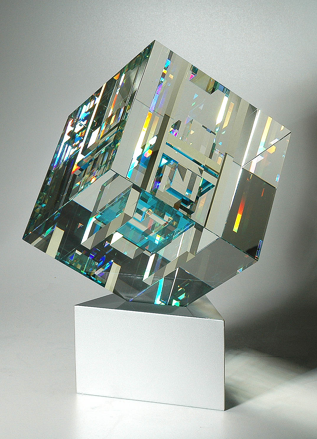 Seit 57 Jahren arbeitet der gelernte Glasschleifer und Glasgestalter mit dem Medium Glas. Seine zumeist aus optischem Glas gefertigten Objekte erfordern höchste Präzision und Sauberkeit, sowie perfekten Schliff und Politur.